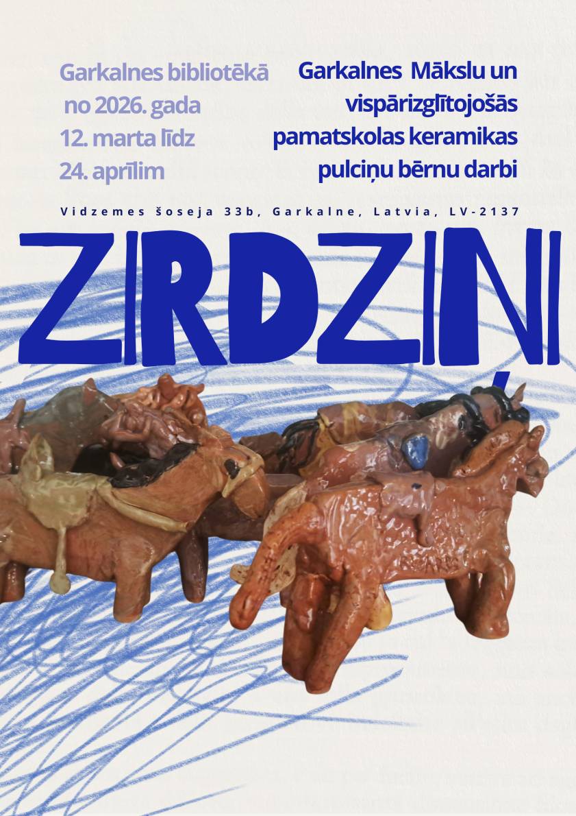 Garkalnes Mākslas un vispārizglītojošās pamatskolas keramikas pulciņa bērnu darbi Garkalnes bibliotēkas lasītavā.